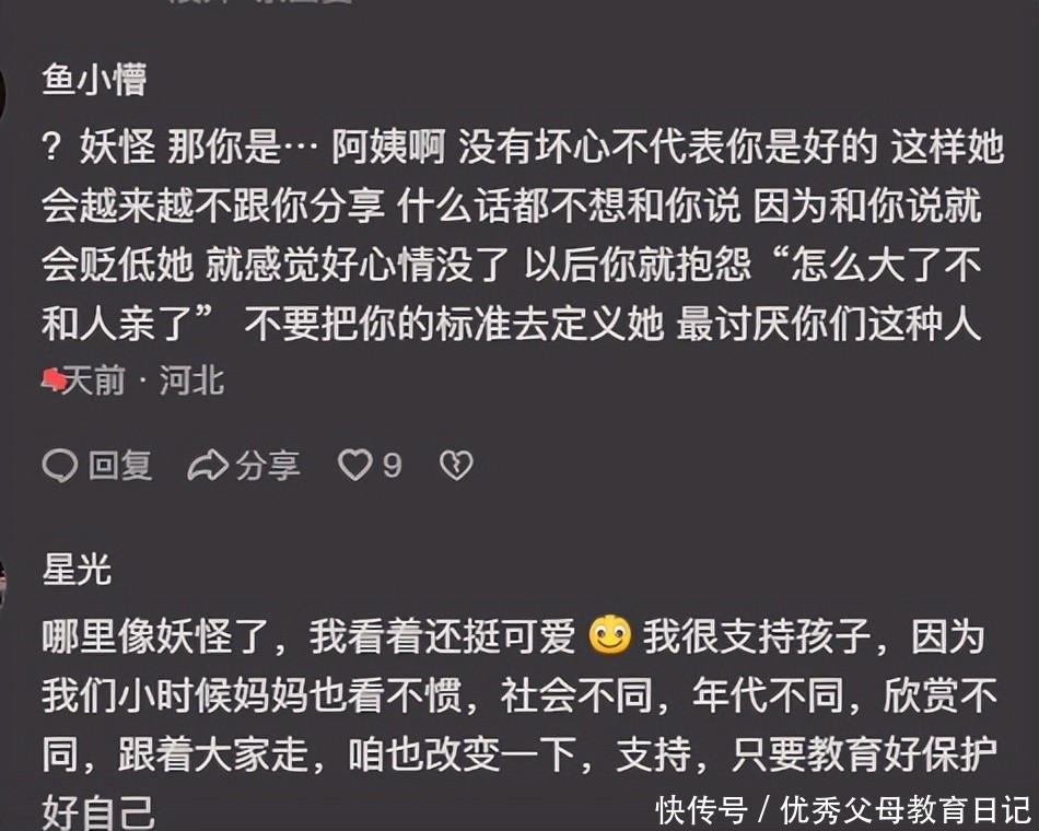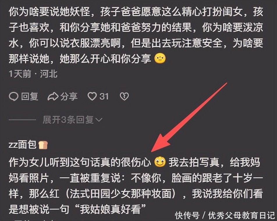 可是家长却在这里左一个不同意,右一个太难看欣赏不来,确实让人觉得这种家长除了扫兴也没啥价值了。
